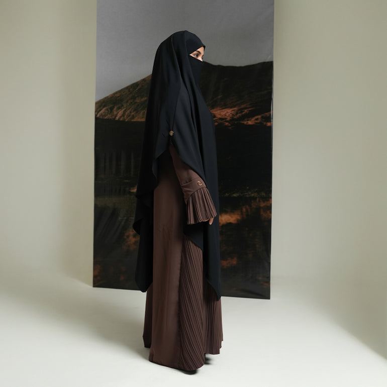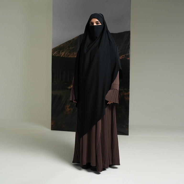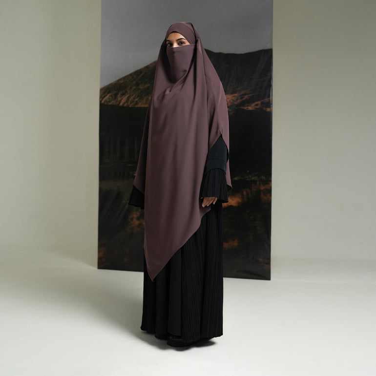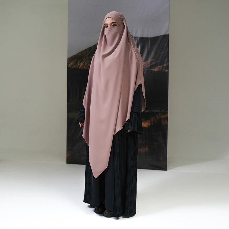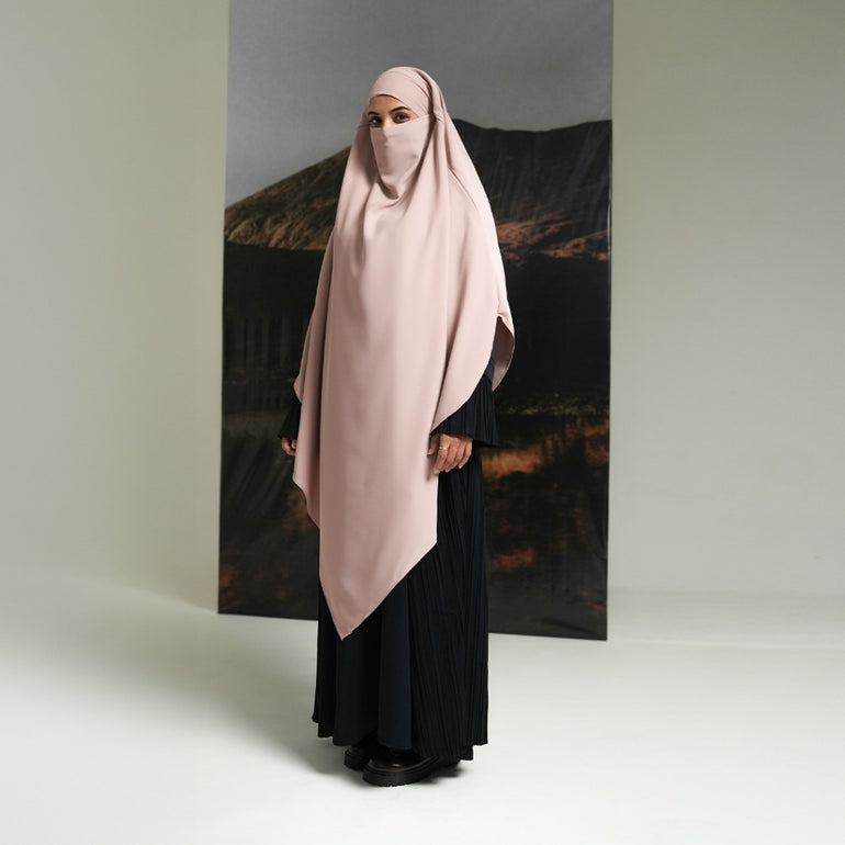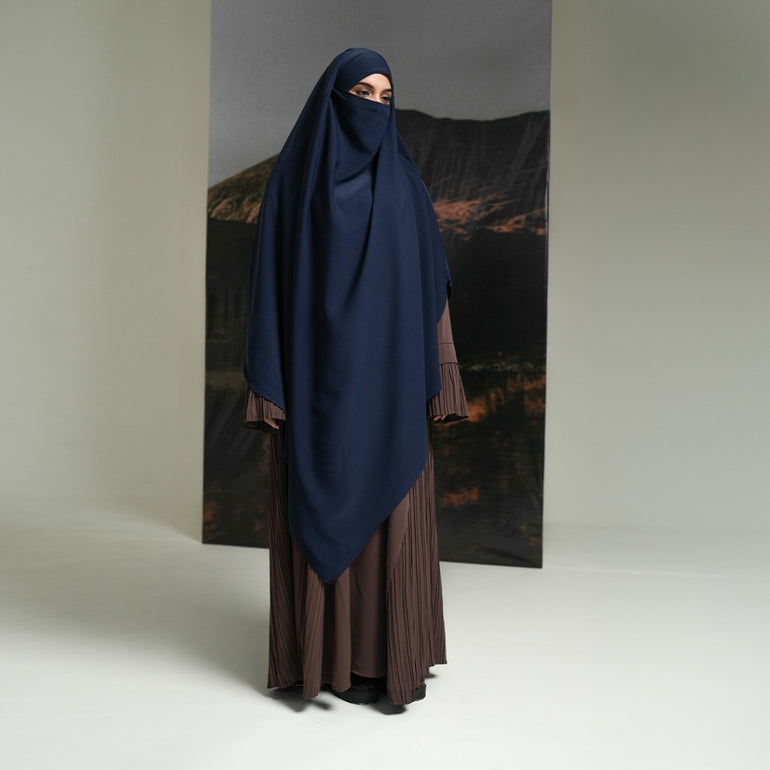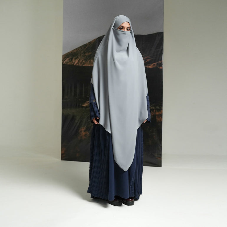 French Khimar dengan model layer segitiga bagian depan dan belakang, di bagian dalam terdapat tali yang dapat diikat sehingga memudahkan pengguna untuk mengatur pemakaiannya apabila ingin dipakaikan cadar secara langsung.
