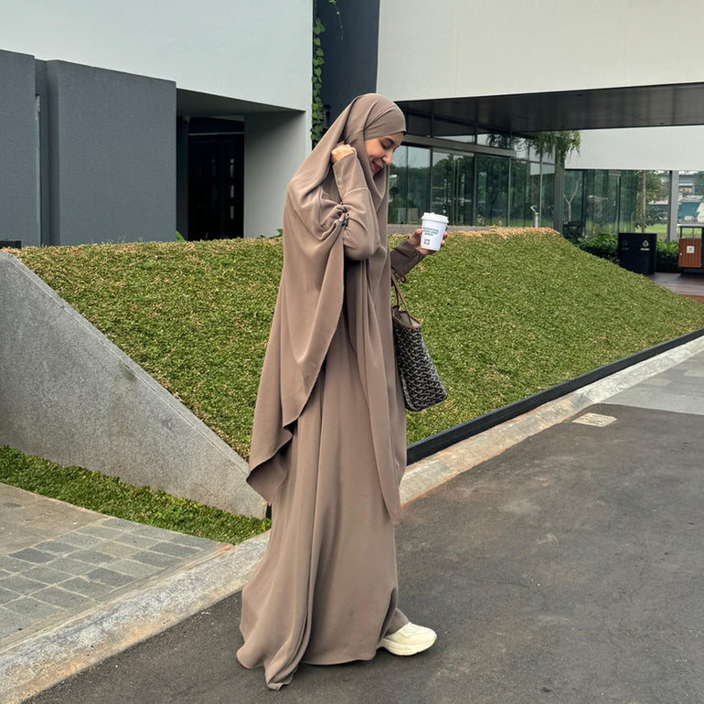 Gerai Hawa - Best Seller Puja Abaya Set French Khimar Syar’i Daily, Polos, Gamis Busui & Wudhu Friendly Bahan Mina Anti UV - Metamorfosa Collection