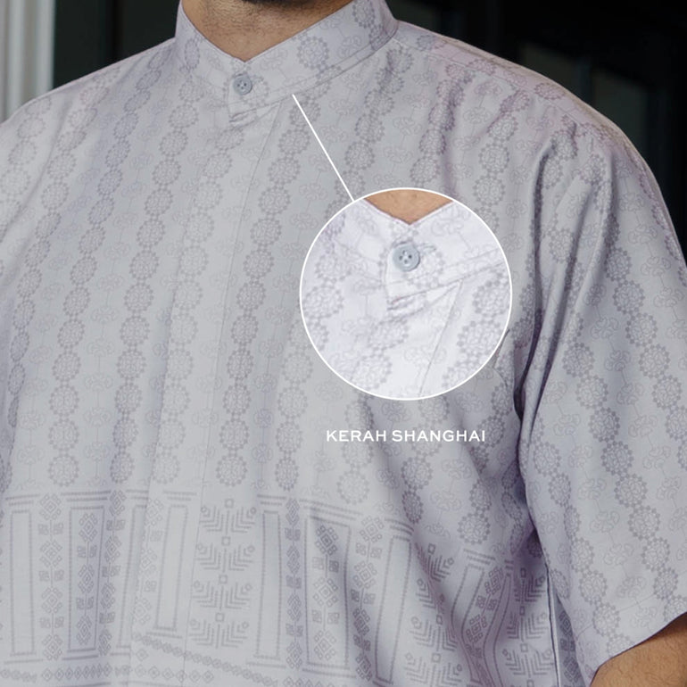 Kemeja motif print logo gerai hawa aksen kerah shanghai lengan pendek dengan bukaan full kancing dalam bagian depan, dan plat logo gerai hawa di kantongnya. Kemeja Koko pria lengan pendek motif ini sangat cocok untuk para pria yang ingin menampilkan stil modern dan elegan, baik untuk kegiatan formal maupun informal.