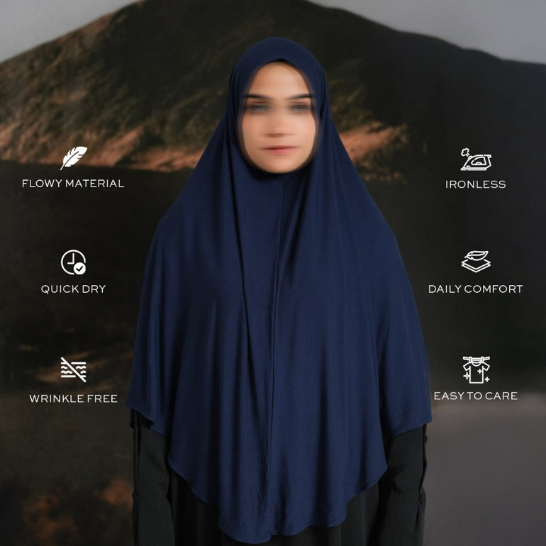 Khimar Instan didesain dengan potongan yang menutup dada, khimar ini memberikan kenyamanan sekaligus menjaga aurat dengan sempurna. Menggunakan bahan rayon yang lembut, Cocok untuk digunakan sehari-hari.