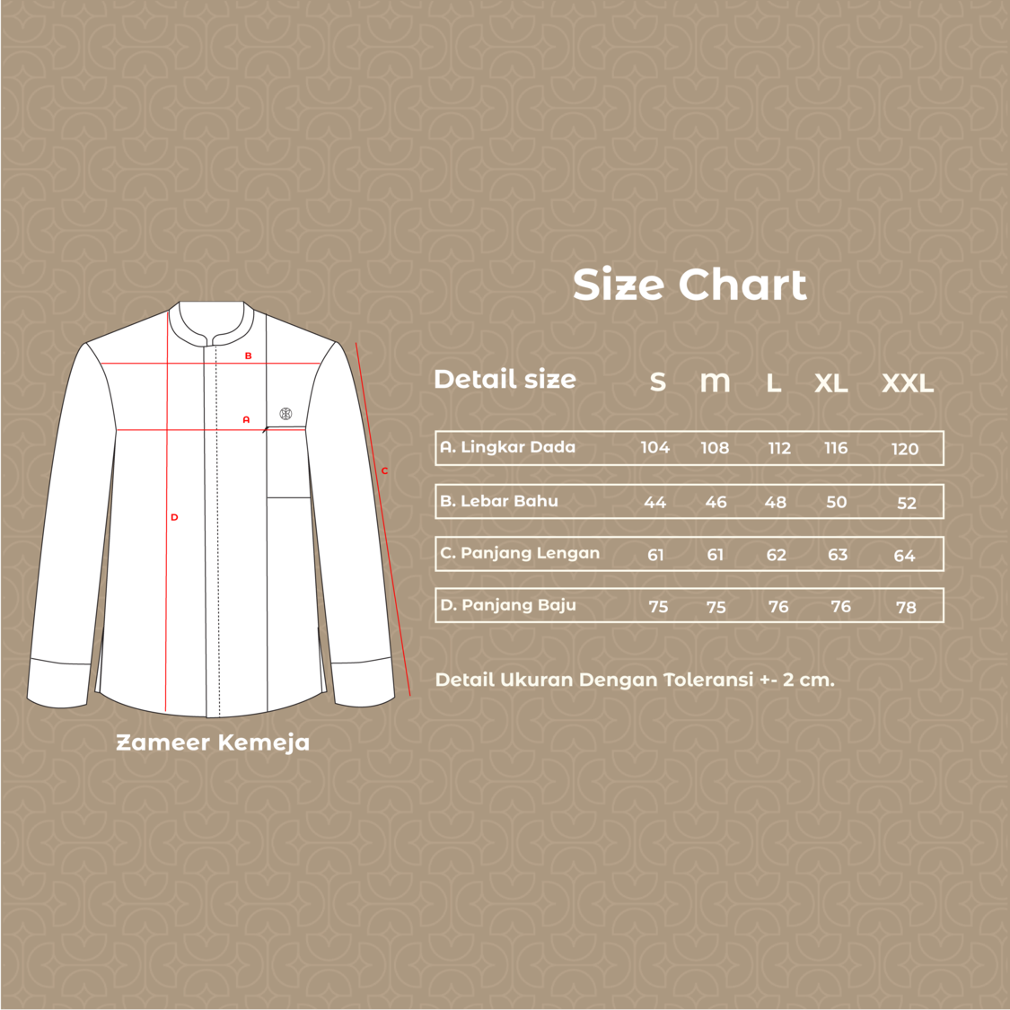 Koko lengan panjang dan pendek dengan kerah shanghai yang memberikan tampilan klasik dan rapi, dilengkapi dengan bukaan kancing dalam untuk kesan lebih minimalis dan bersih. Detail kantong dengan bukaan resleting berfungsi agar lebih aman, praktis dan estetika modern. Kemeja ini cocok untuk berbagai kesempatan, baik formal maupun kasual.
