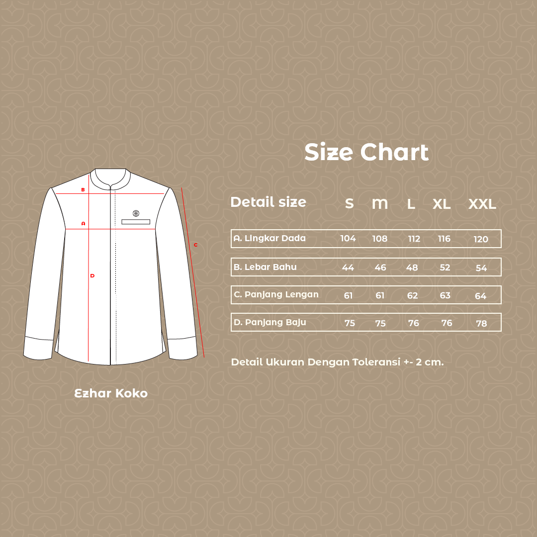 Koko lengan panjang dengan kerah Shanghai yang memberikan tampilan klasik dan rapi, Dilengkapi dengan bukaan kancing dalam untuk kesan lebih minimalis dan bersih. Kombinasi dua warna memberikan sentuhan modern. Koko ini cocok untuk berbagai kesempatan, baik formal maupun kasual.