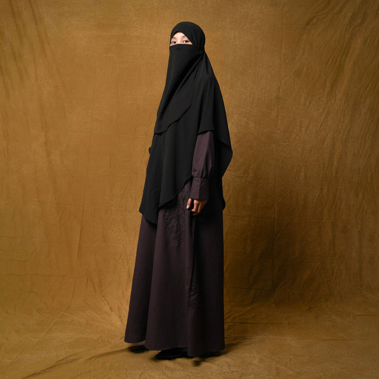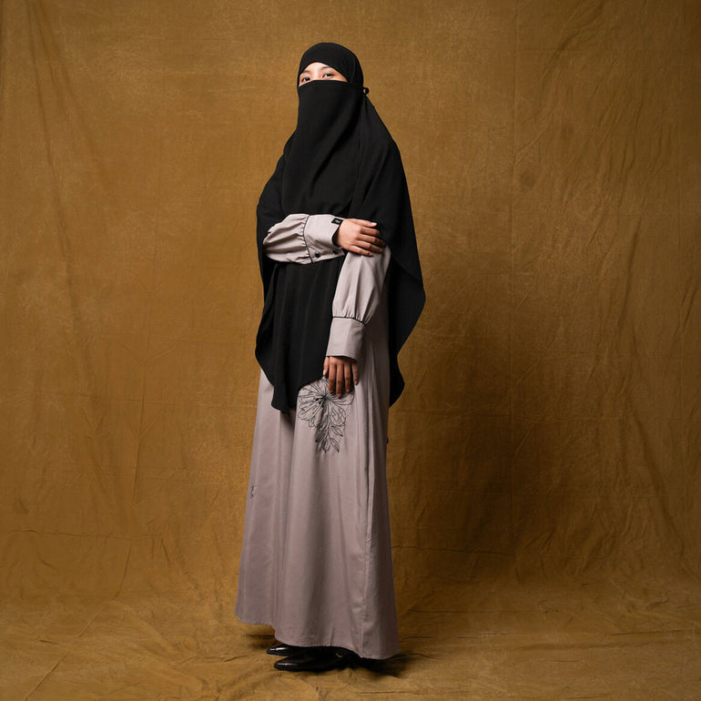 SILENT BLOOM EDITION adalah rangkaian koleksi dari BAYTI SERENITY yang terinspirasi dari keindahan yang tumbuh dalam keheningan. Koleksi ini merepresentasikan perjalanan jiwa yang bertumbuh perlahan melalui doa, kesabaran, dan ketenangan—hingga akhirnya mekar dengan penuh makna. Busana ini dilengkapi dengan detail bordir bunga berwarna hitam yang hadir sebagai simbol keindahan yang tumbuh dalam keheningan. Motif floral digarap secara halus dan tidak berlebihan, mencerminkan filosofi Silent Bloom—mekar tanpa suara, namun penuh makna dan keteguhan.